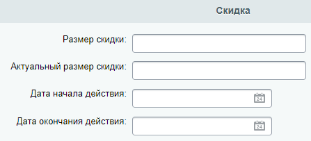 - Ручной скидки товара, которая приходит из внешнего источника (в данном случае 1С) и имеет определенный период действия;